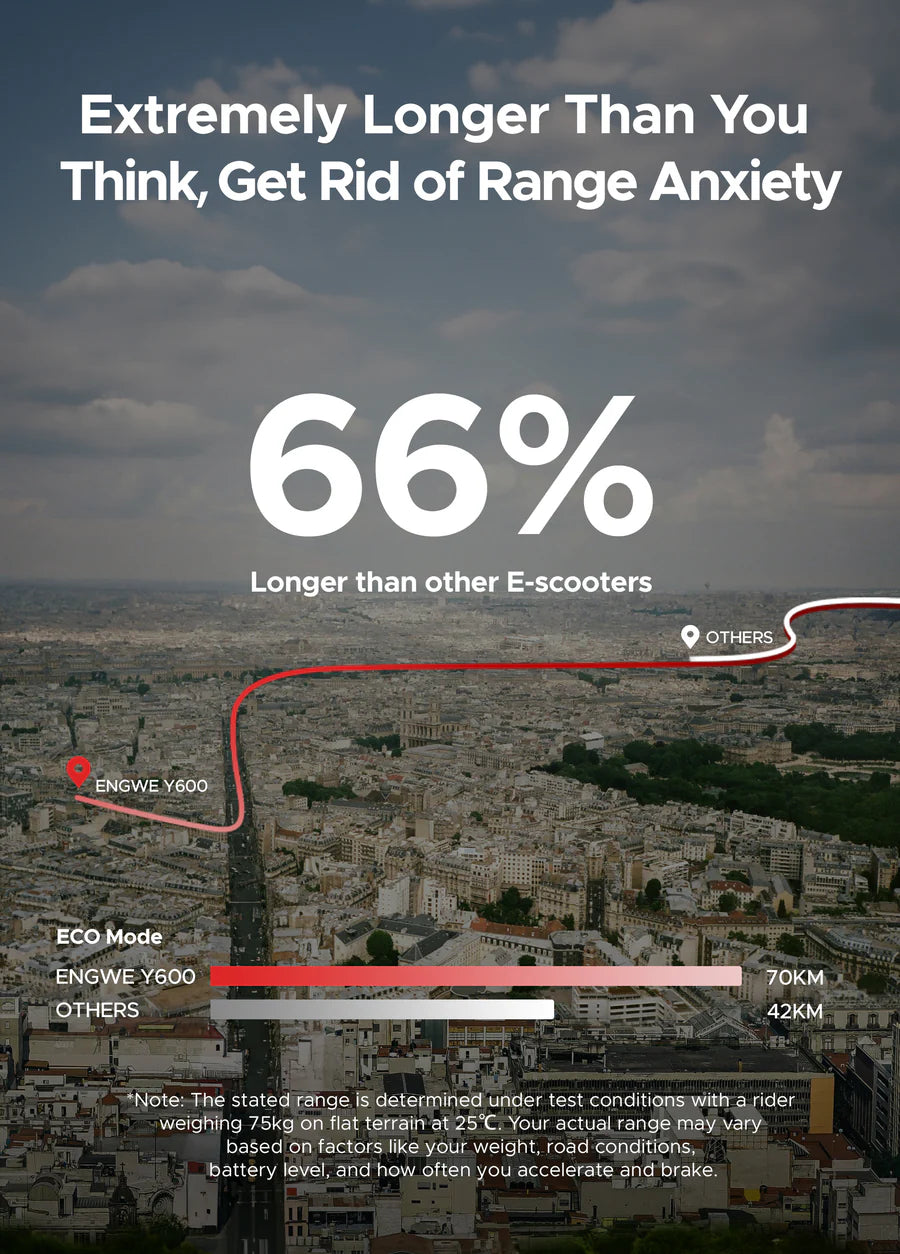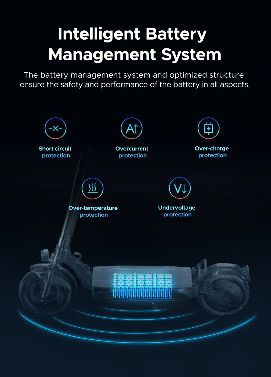 Easily control the Y600 E-scooter's lights and new ambient lighting with buttons on the handlebar. The exclusive surround and ambient lighting system ensures all-around safety and adds a stylish glow to your ride.